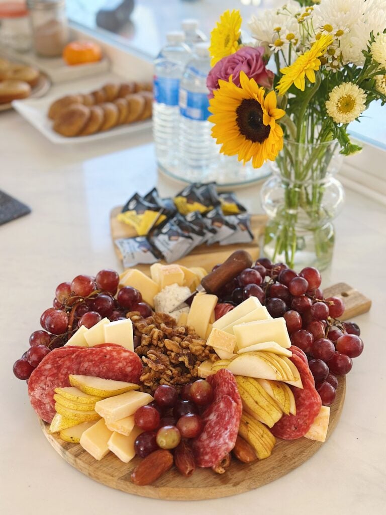 We served this Fall Charcuterie board at our Pumpkin Paining Party in October. It was a fun and casual way to get the fall season started. We served this with our delicious Fall Harvest Salad.