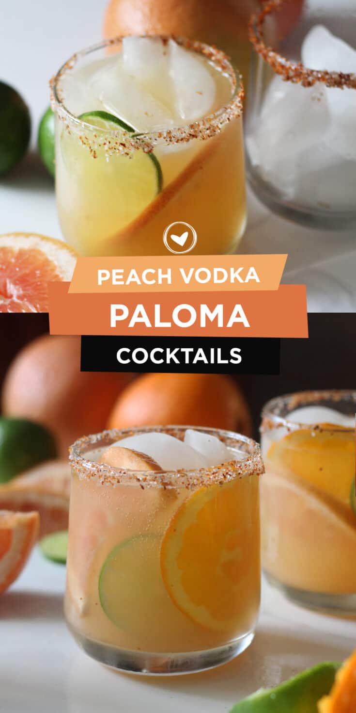 My brother and his girlfriend introduced me to Paloma's on our last trip to Cabo. It ended up being our drink of choice for the week we were there. Each restaurant had a different spin on the Paloma. My favorites were made with grapefruit juice and soda water or made with Fresca. Since I don't typically drink sugar free beverages, I came up with a spin on the typical Paloma. This Peach Vodka Paloma Cocktail is made with vodka instead of tequila and juices mixed with soda water. It's super refreshing, incredibly tasty and has all the awesome flavors of an original Paloma.